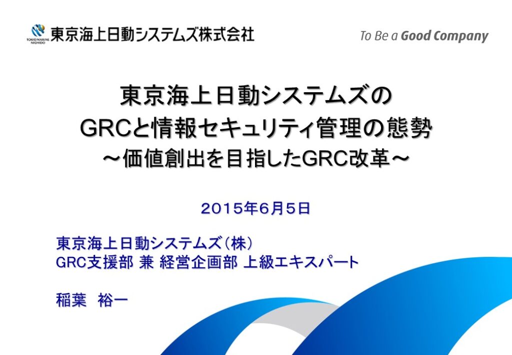 - 日本IBM様天城ITフォーラムにおける講演「東京海上日動システムズのGRCと情報セキュリティ管理の態勢~価値創出を目指したGRC改革~」